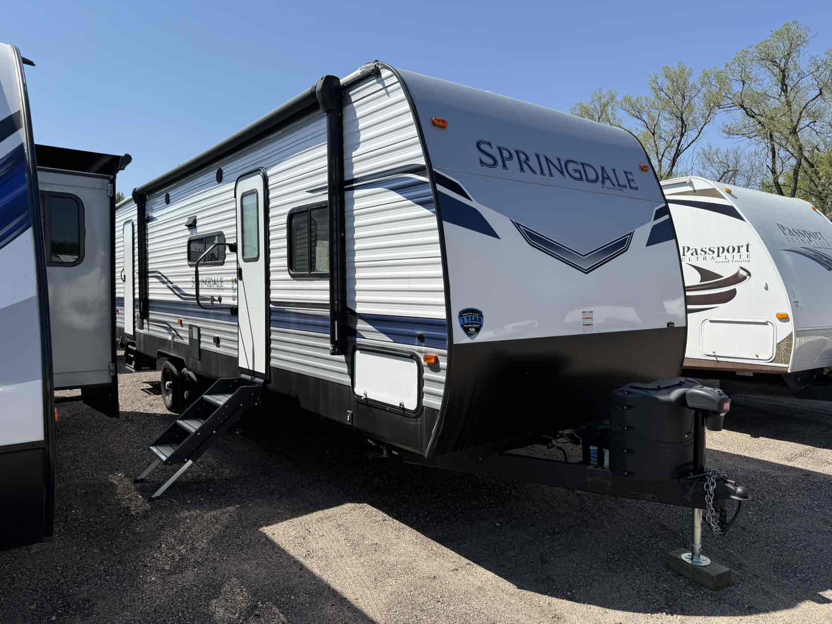 No matter how you define family, Keystone Springdale affordable travel trailers have a model for that. Just you and your boo? You'll find couple's coaches from tiny to large. Looking for the best family camper? Springdale travel trailer bunkhouses are available in every configuration imaginable. Kick your camping game up a notch with a fireplace, WiFi prep, power stabilizer jacks and family-sized freshwater capacity.