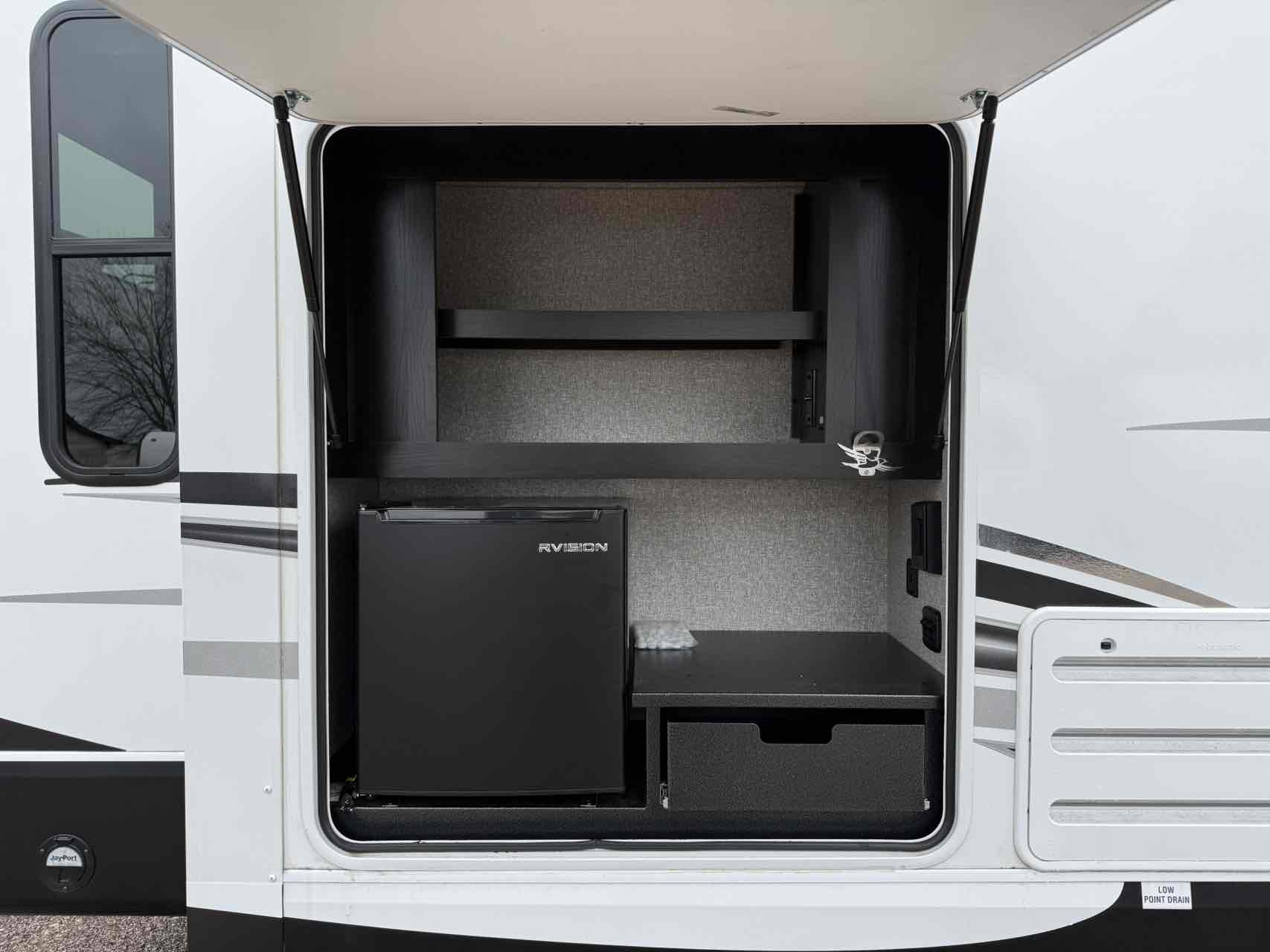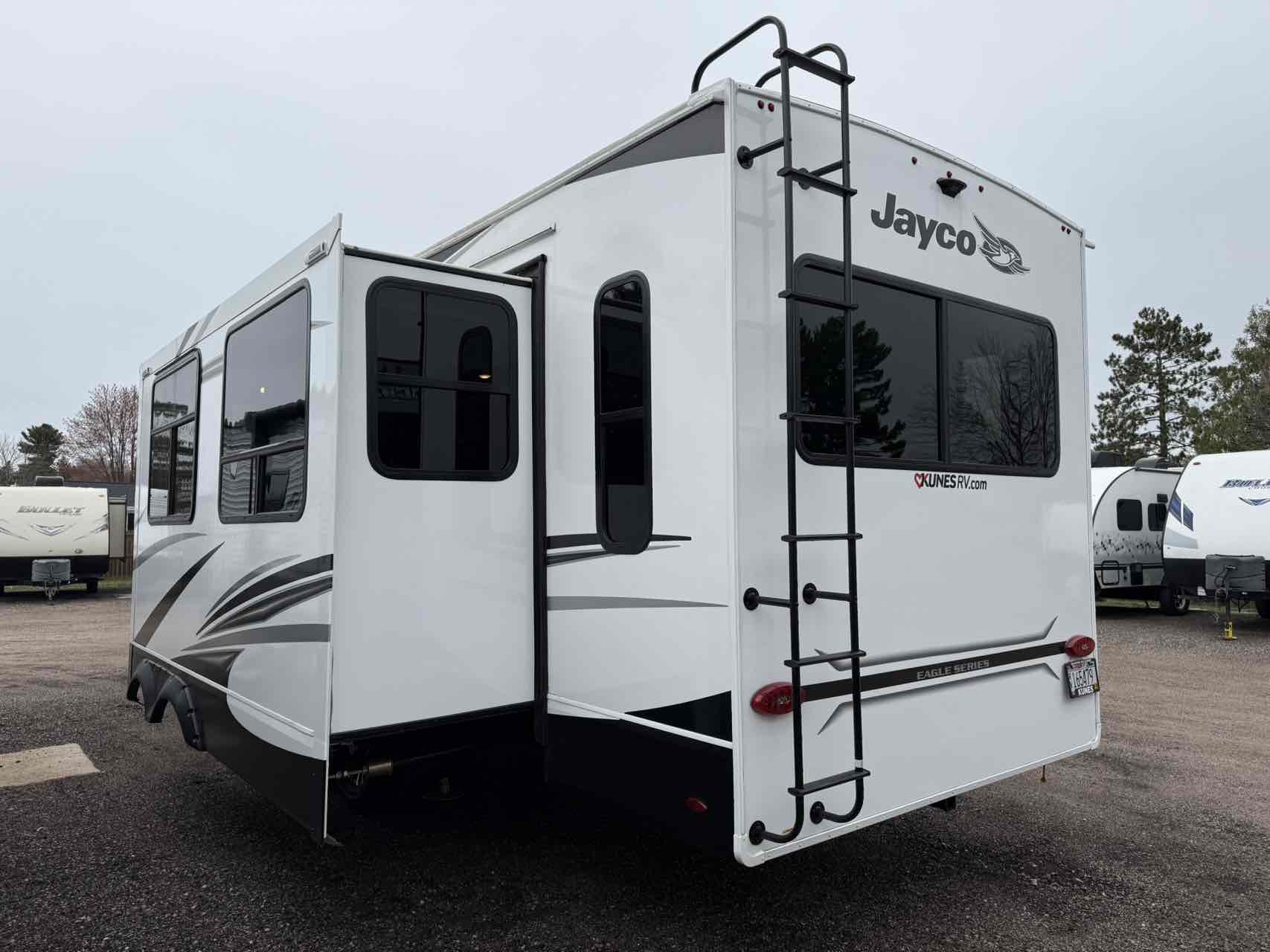 The Eagle HT Travel Trailer is the go-to for adventures around the bend. Pre-wired for an inverter, easily add one to run your rig on batteries and enjoy off-grid capabilities. The 81-gallon fresh water tank adds to your ability for off-grid camping, holding more than most competitors. Control it all from the JAYCOMMAND Smart System with TPMS, the hub of the RV. JAYCOMMAND allows you to control and monitor key operations from your smartphone or tablet with just the touch of a finger.
