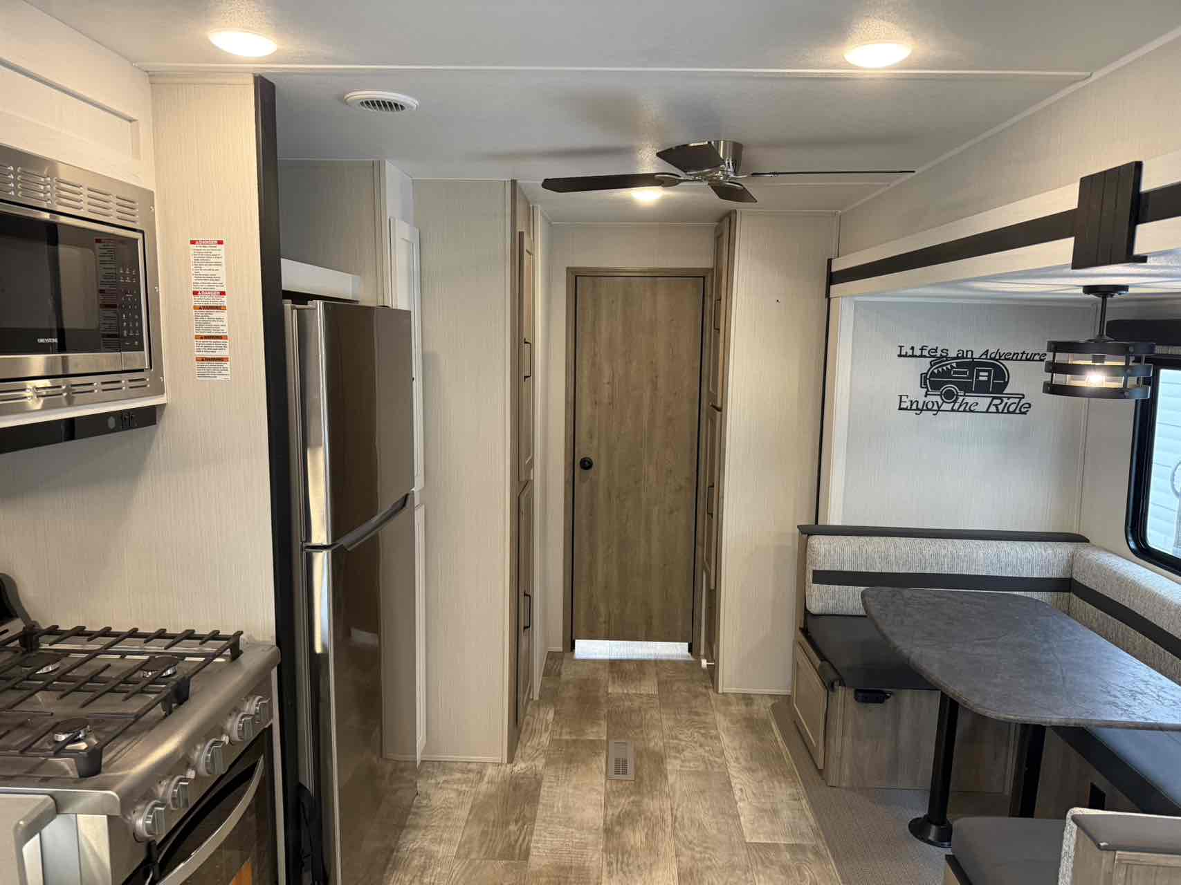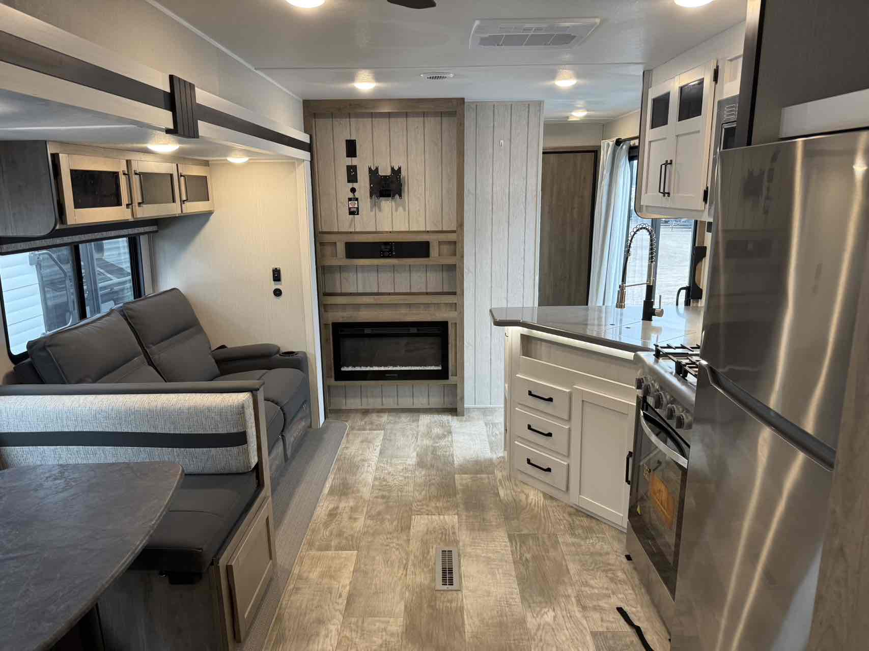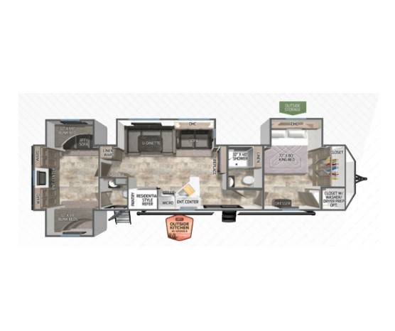 This Puma Destination Trailer features a front bedroom with a king bed slide out. Opposing slides in the back bunk house grant you copious amounts of space. With a sofa and dinette, you will not have to fret about where guests can sit. This camper comes full of windows allowing in natural light and providing a great vista of the exterior. Furthermore, A wardrobe along with a closet with washer/dryer prep can be found very useful for all of your belongings.