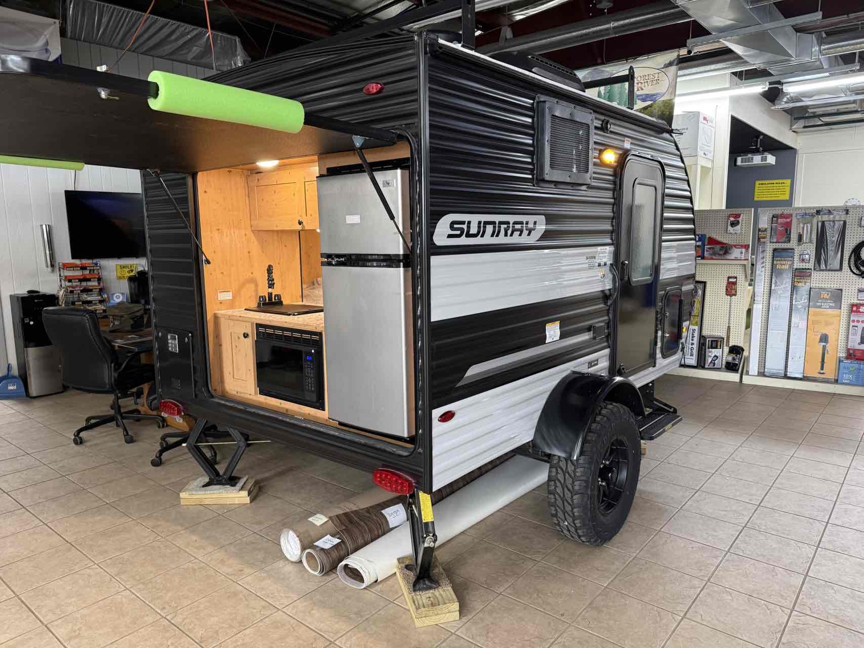 If that’s not what you are looking for in camping experience, you can always take your SUNRAY off-grid to get away. Customized packages, like Sunset Park RV’s Solar Package, makes the SUNRAY your perfect off-grid camper. Additionally, the Sport Package offers extra ground clearance and adds rugged, sporty tires to your trailer. This package also includes a roof rack for you to bring your adventure gear. With the amount of aftermarket customizations that you can easily add to your SUNRAY, the possibilities are endless.
