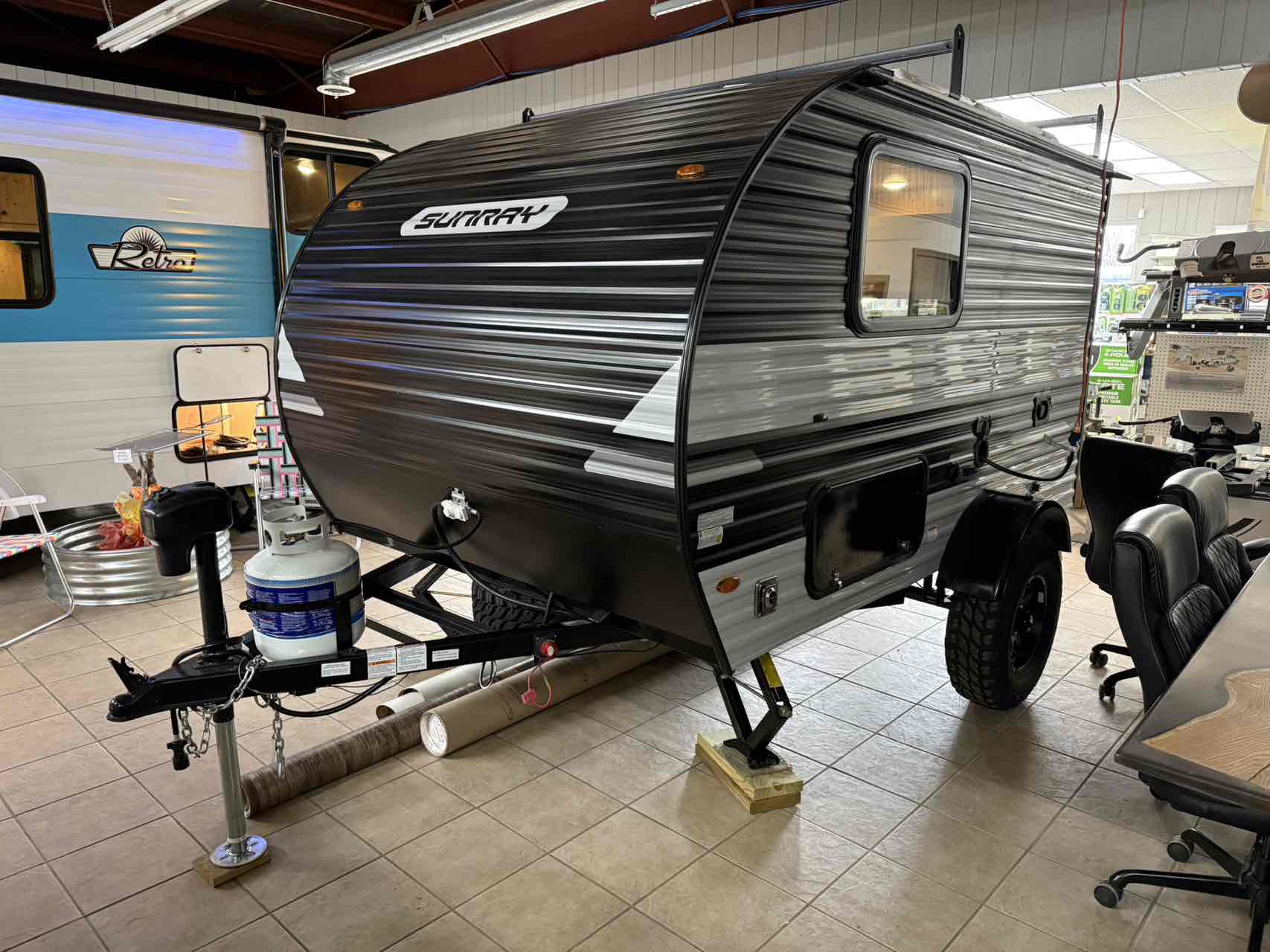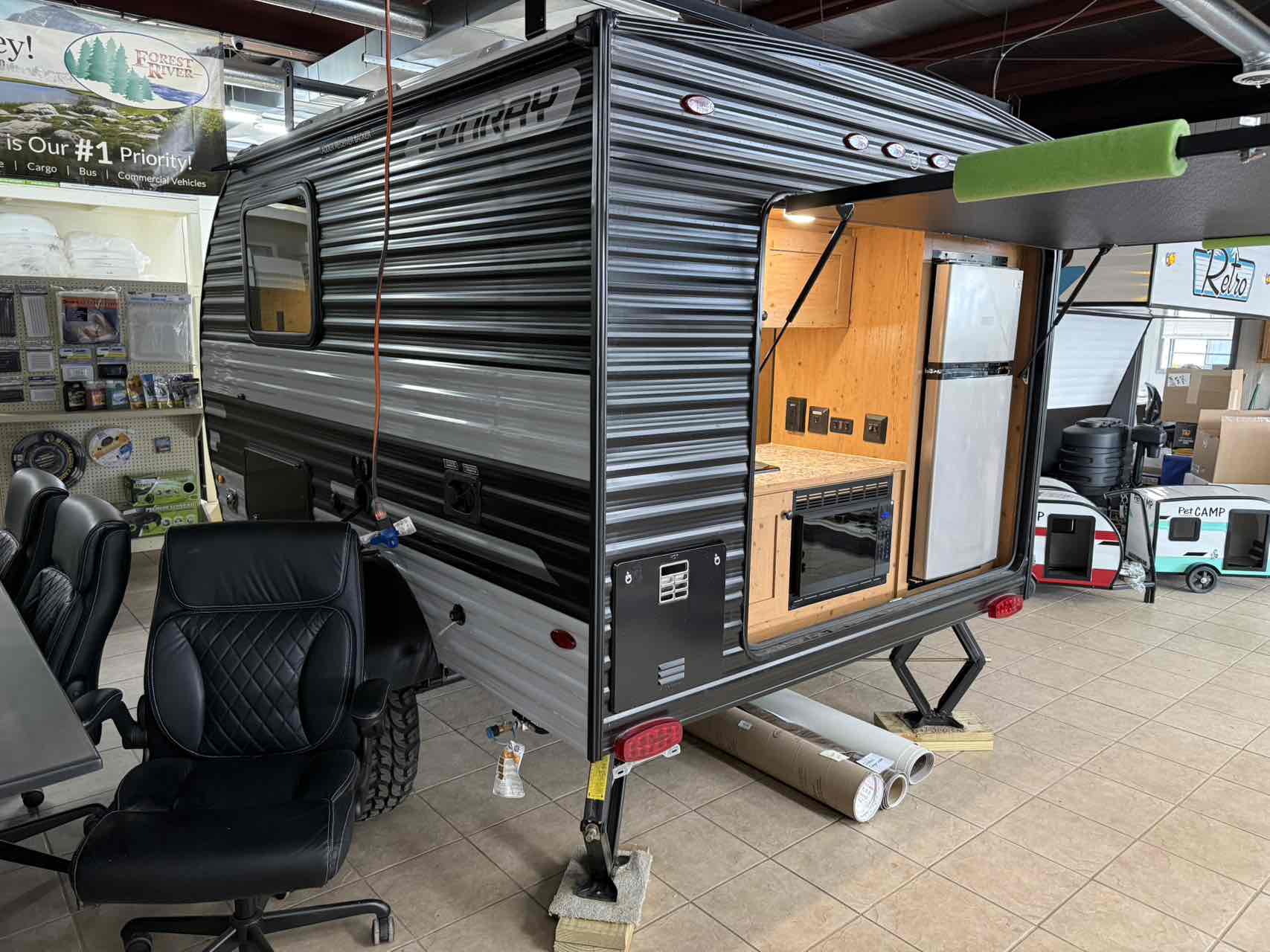 Take your SUNRAY to a campground and relax both inside and outside of your SUNRAY. Awnings and canopy rooms are simple additions to double your space without the stress of pulling a full-size trailer through cities, construction zones, or tight roads. We will warn you that you should be prepared to meet your fellow campers! Your SUNRAY will draw the attention of on-lookers from the newbies to the most experienced of campers.